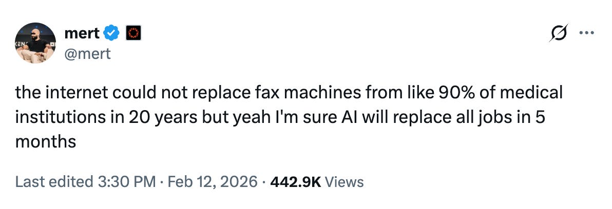 It’s possible to be Unsloppable but not an obvious beneficiary, but you’ll still likely sell off, as the market digests and interrogates the actual real world impacts of coding agents. Some industries will be more resistant to change, other industries will be revealed to have a secret source of market power that was underappreciated in the before times.